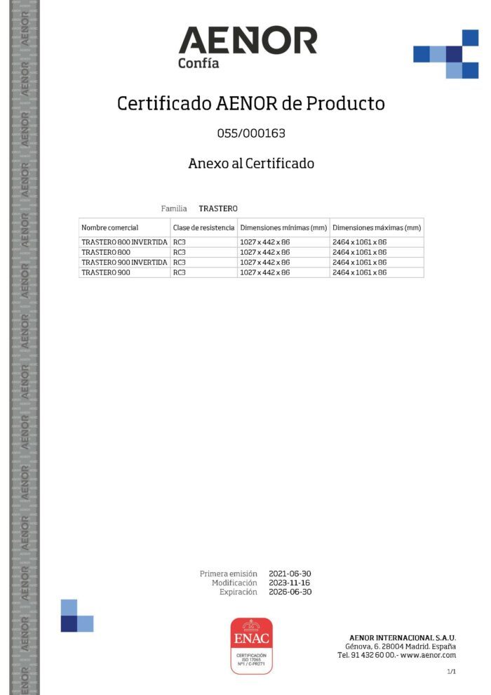 Certificado de producto de RC3 por AENOR según la norma UNE EN 1627:2021